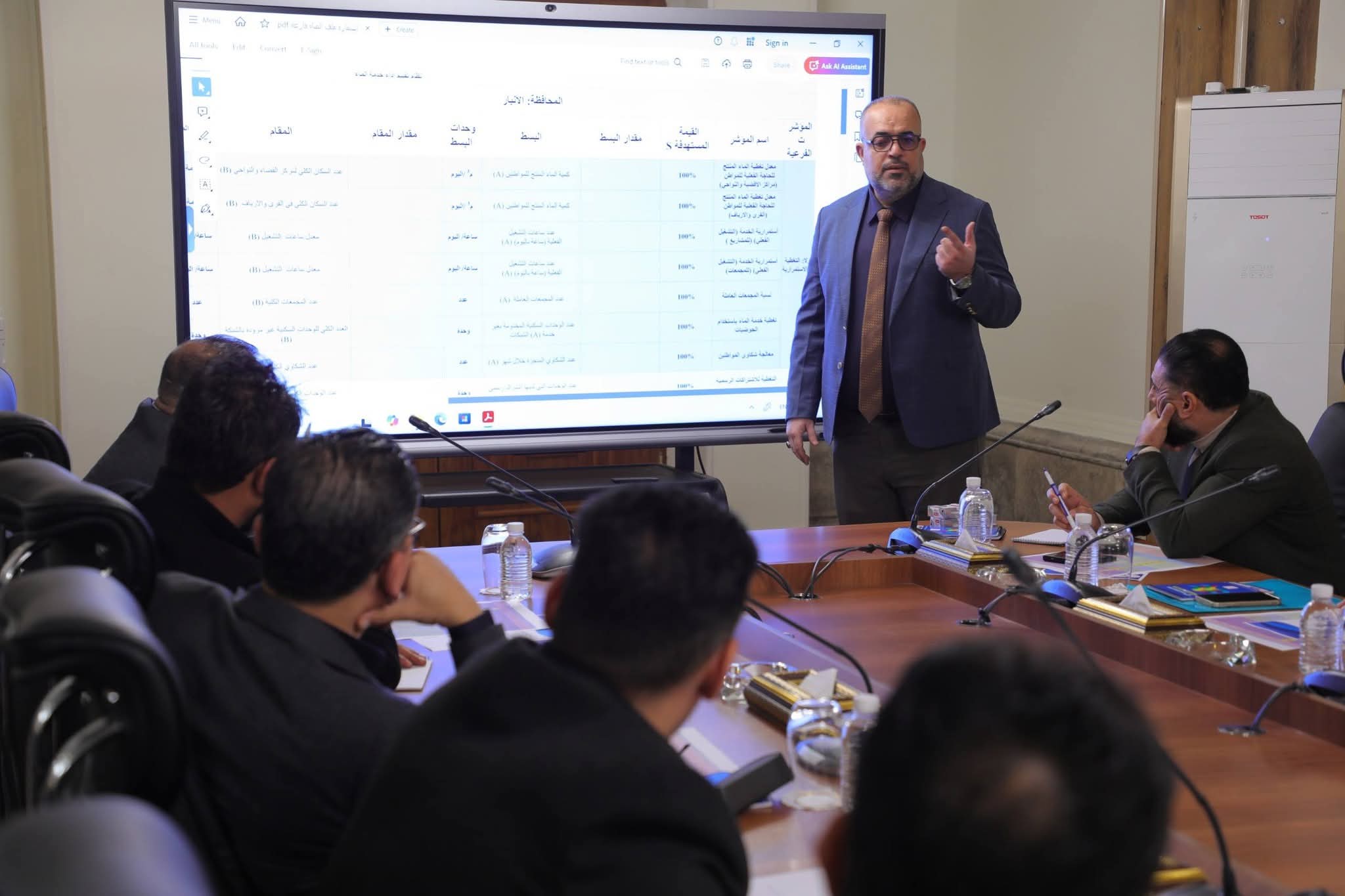 أقامت لجنة الأمر الديواني (250786) لسنة 2025، المختصة بتقييم أداء مديريات الماء وجودة مياه الشرب، ورشةً تدريبيةً في مقر الهيأة العليا للتنسيق بين المحافظات، خُصِّصت لشرح استمارة تقييم الأداء لخدمة الماء الصالح للشرب.